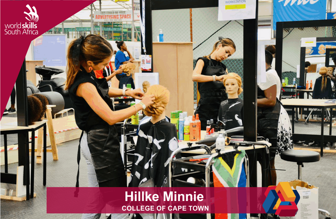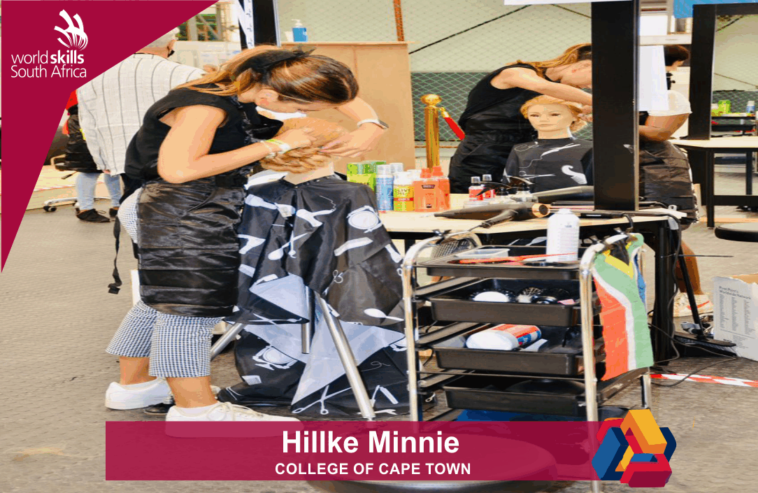 Inspiring Minds and works for Hugo The Hair Company. Her skill is Hairdressing. She’s been doing well so far and we are confident she will finish the task on a high note. #worldskillsafricacompetition